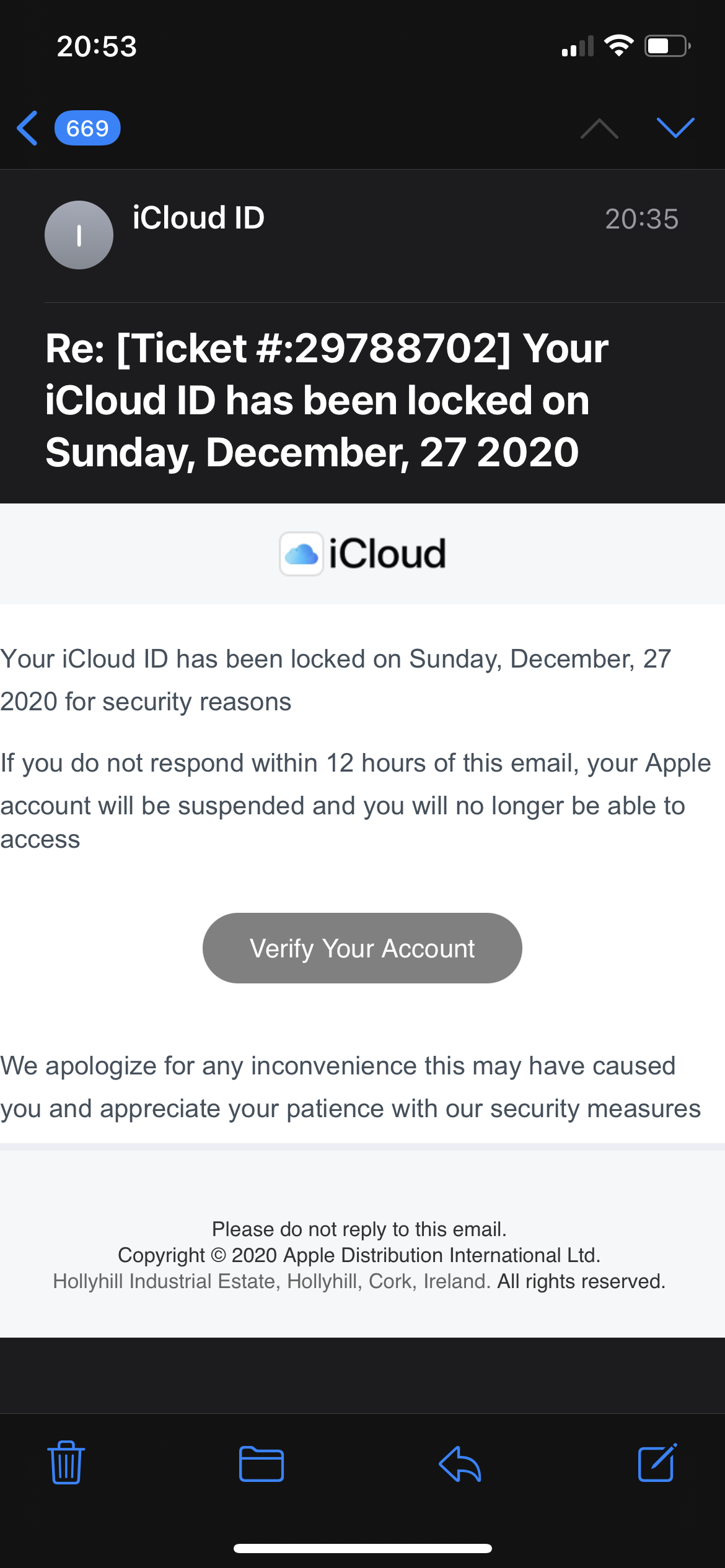 Send the e-mail to Apple as an attachment to a new e-mail before deleting it. You can forward as an attachment by going to Mail/Message/Forward as attachment. Or control - click on the email and select Forward as attachment. Make sure you send it as an attachment to a new email. If you just forward it, it will probably be rejected. You won’t receive a response.