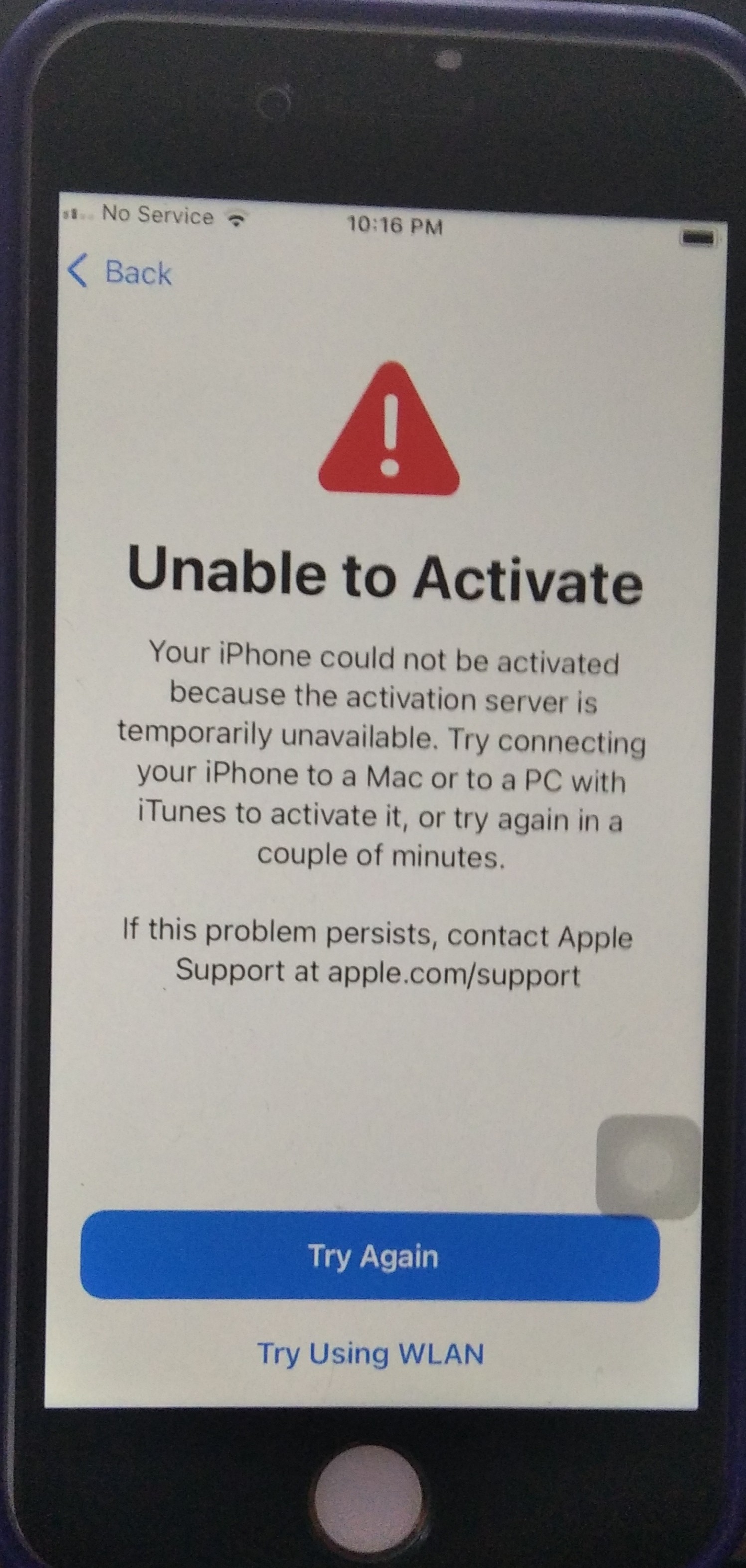 Message is: Your iphone could not be activated because the activation server is temporarily unavailable. Try connecting your iphone to a Mac or to PC with itunes to activate it ,or try again in a couple of minutes.