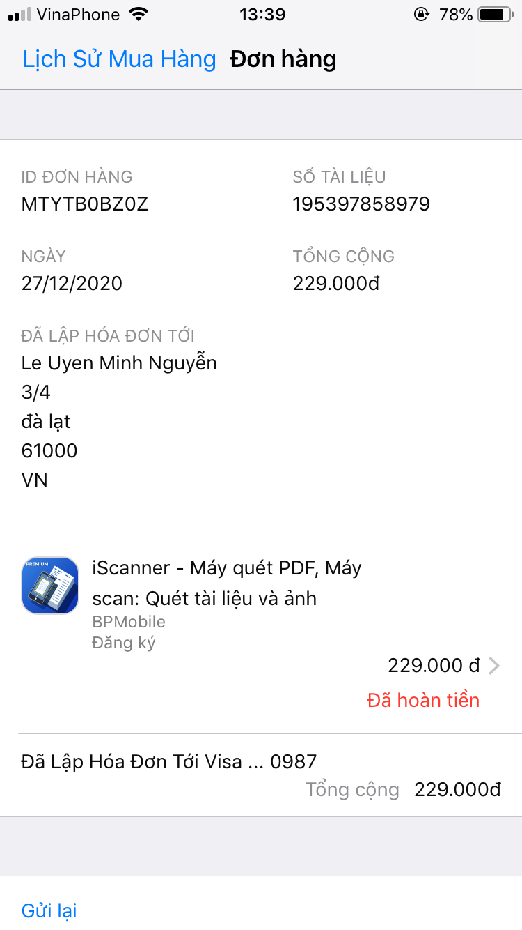 I haven’t still received the refund for app scanner yet. Please check it again and send me a photo to prove it. Thank you!