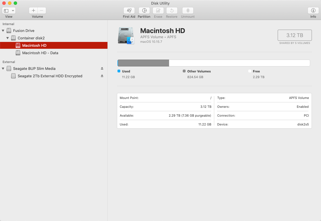 After an unsuccessful foray into running Big Sur on an unsupported Mac, I decided to return my late-2013 Mac with 3Tb Fusion drive back to "factory" and restore my backup (Catalina). I completed that today, and everything seems to be running fine, but I would just like to double-check with you experts out there that it looks "right" (e.g. APFS?; storage volumes are as they should be, etc)