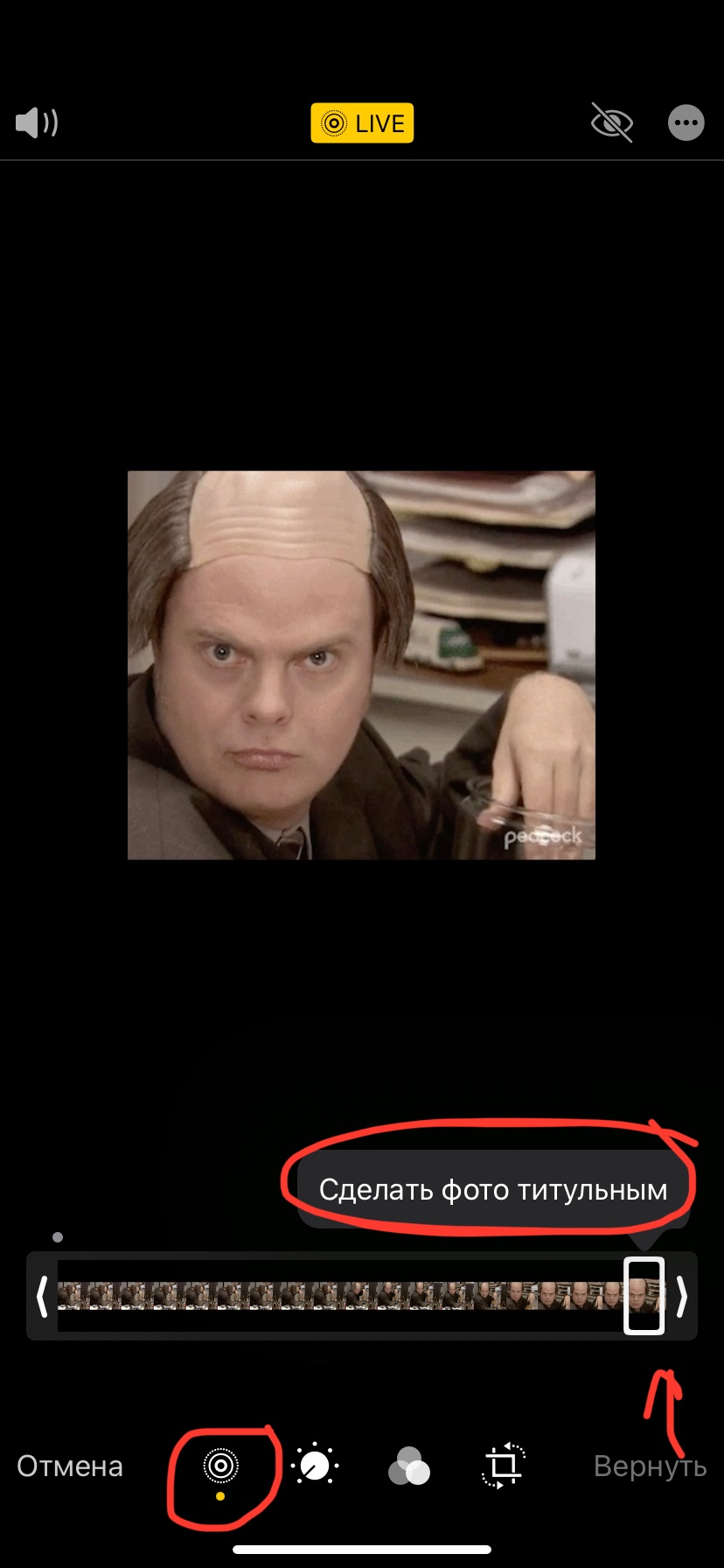 Hi. You need to go to your Photos library, select needed Live Photo, and hit “Edit” in the top right corner. Then press Live Photo icon in a left bottom corner, drag the frame to the end and make the last frame of the Live Photo your key photo. Then you can use this life photo for the watch face. 🙃