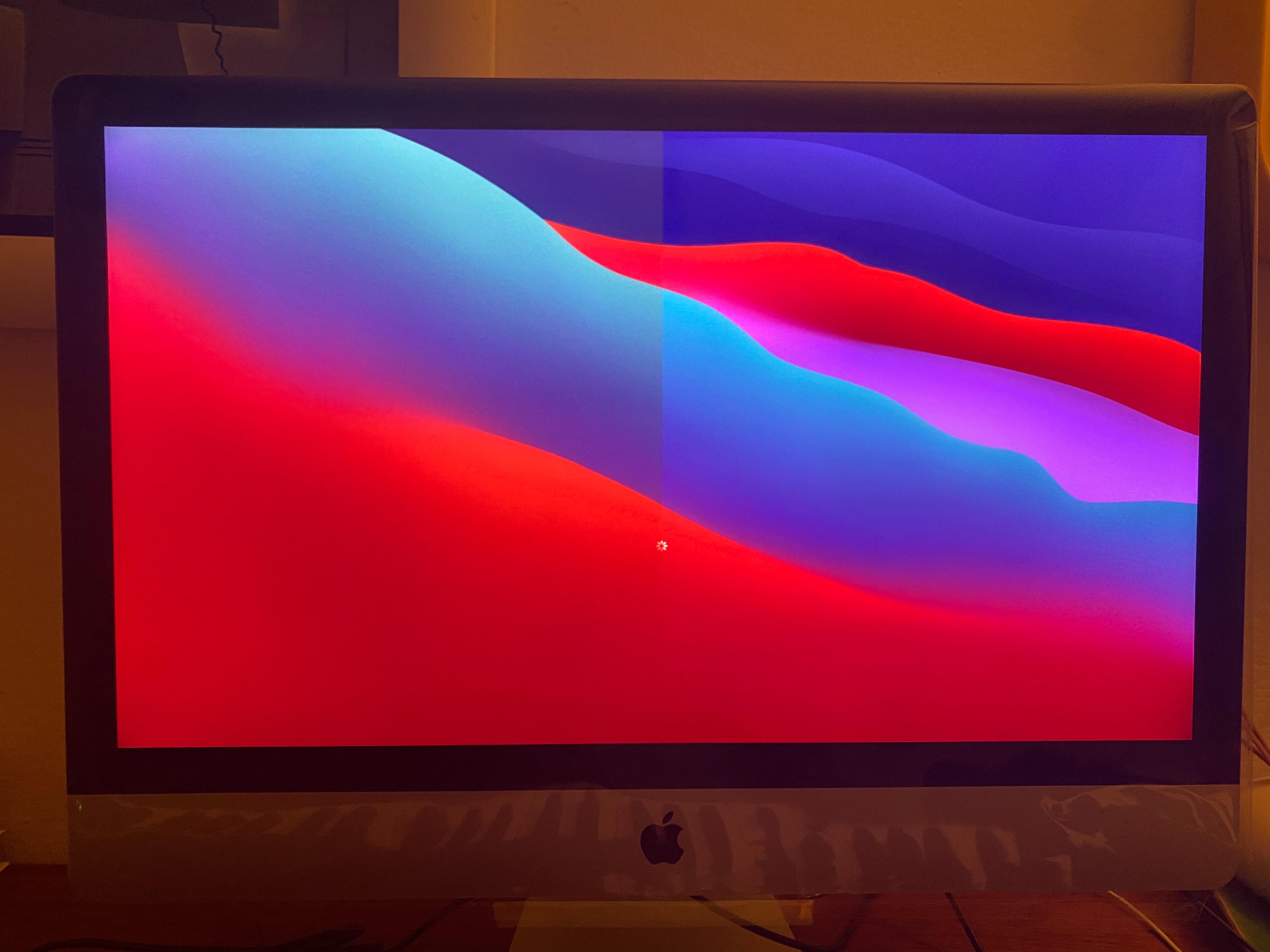 Greetings, just got a new 2020 iMac, 10-core i9, 5700XT 16 GB. It's running BigSur 11.1. I experience a weird screen issue when shutting down. The screen splits in half with the left side having a different hue. Tried it with a solid desktop color (instead of photo) and same issue. When I connected second monitor (TB Display) and shut down, the screen glitch was visible on the iMac only, not TB. Interestingly, when I turn the machine on and shut it down within say 5-10 mins NO split screen/hue glitch. But as soon as the Mac is working over say 15 mins, the glitch is evident on each subsequent shut down. I haven't observed any other issues, but to be honest I haven't ben using it much yet. Of course, I tried PRAM/VRAM, SMC resets, as well as OS reinstall, and no issues. Nothing came up on D scan. Is this a software or hardware issue? I can still return the Mac, but it would be a pain. See photo attached and thanks for any helpful suggestions, best, P.