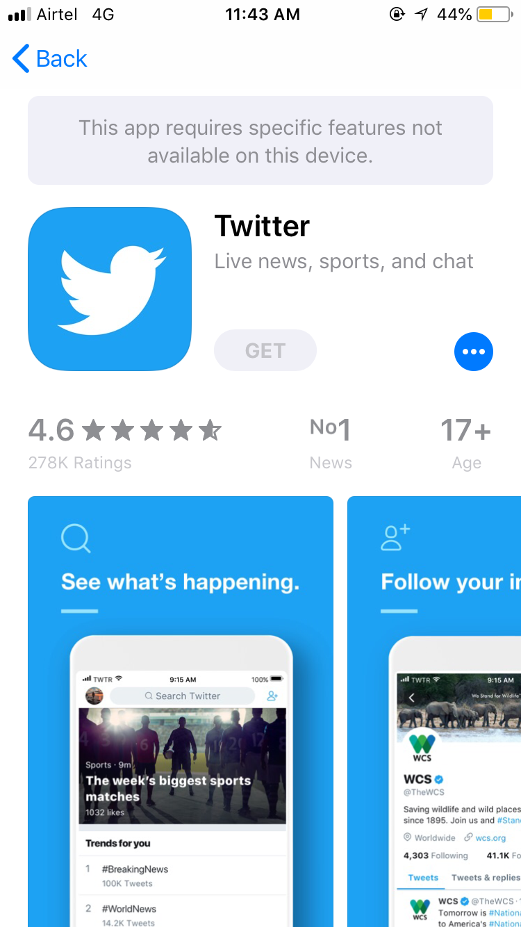 Twitter on the App Store - shows you need to have at least iOS 12 or later.