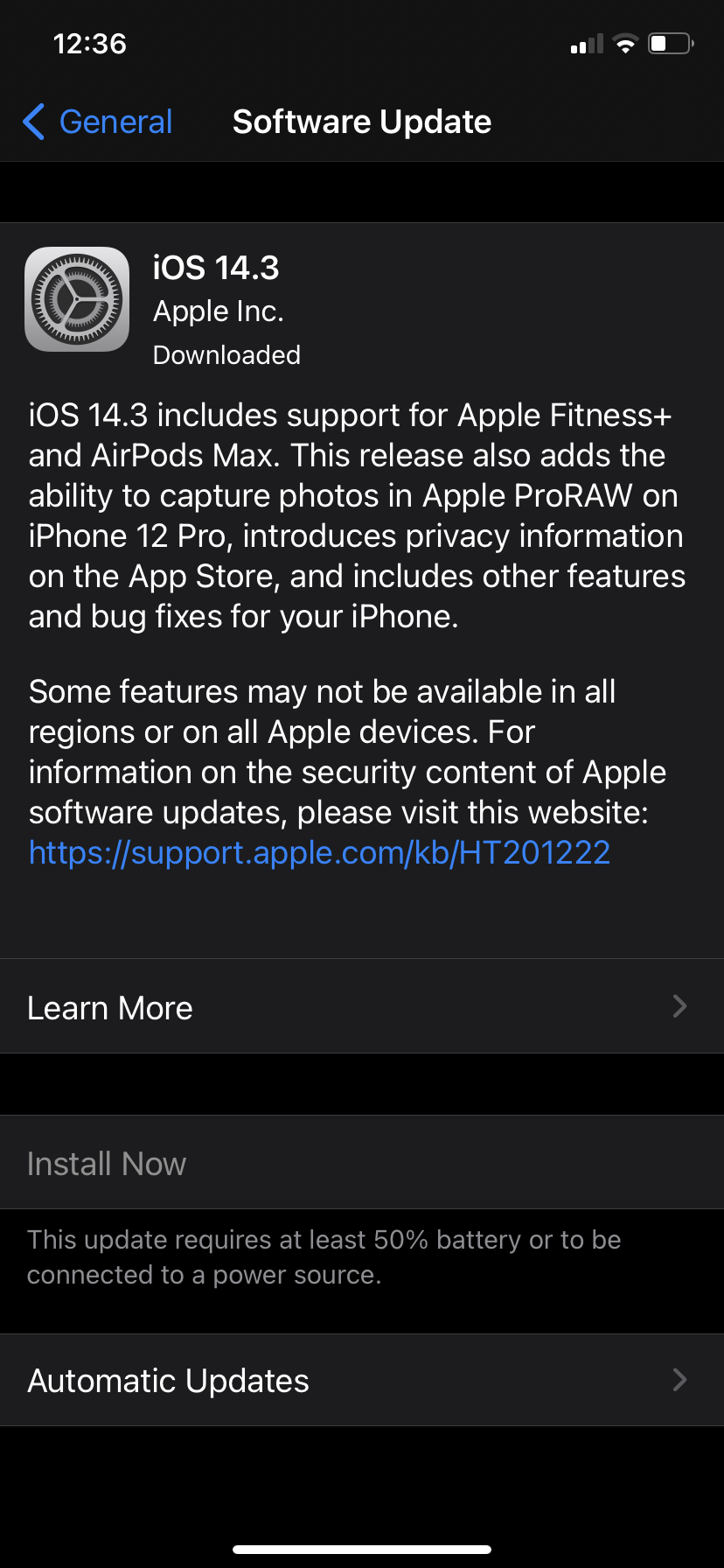 Make sure that your battery is charged to more than 50% or connected to power and that you care connected to a Wi-Fi Network. Then try again.