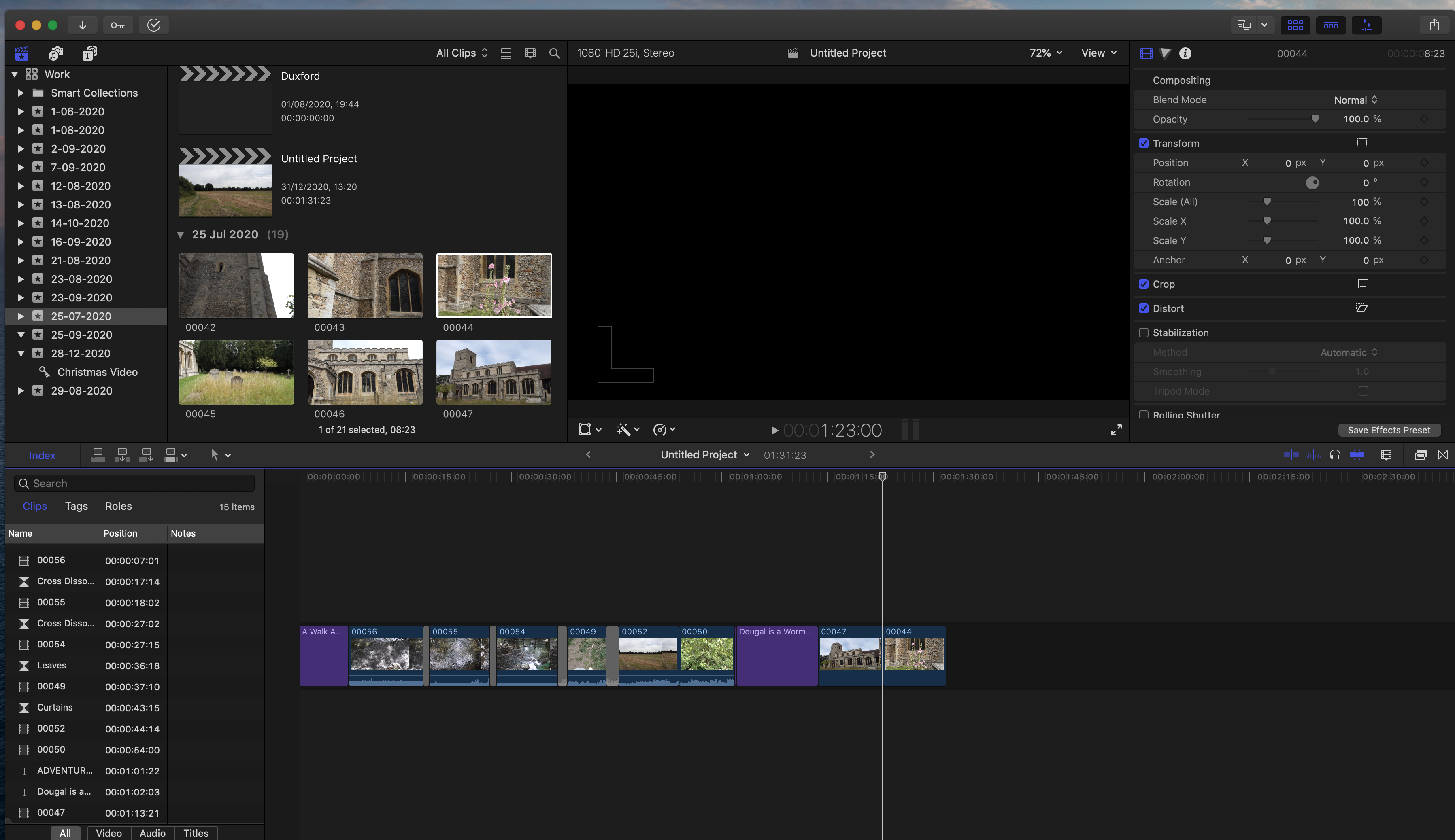 Black blank frames between clips lasting about 1-2 seconds. Cannot seem to highlight them to delete frame although you can put the play head on the exact frame. If you leave them in and playback the video you just end up with a flicker effect in playback.