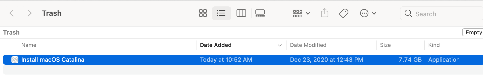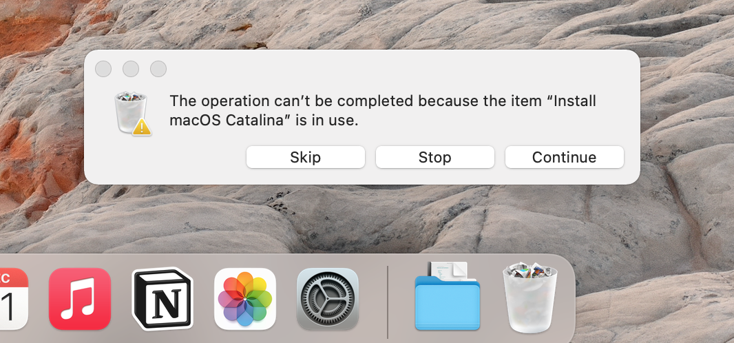 Cannot empty trash - Catalina installer stuck?