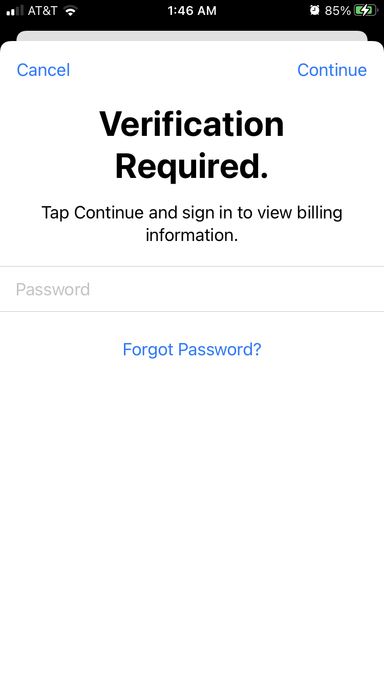 iPhone displays a Verification required tap continue an sign in to view billing information