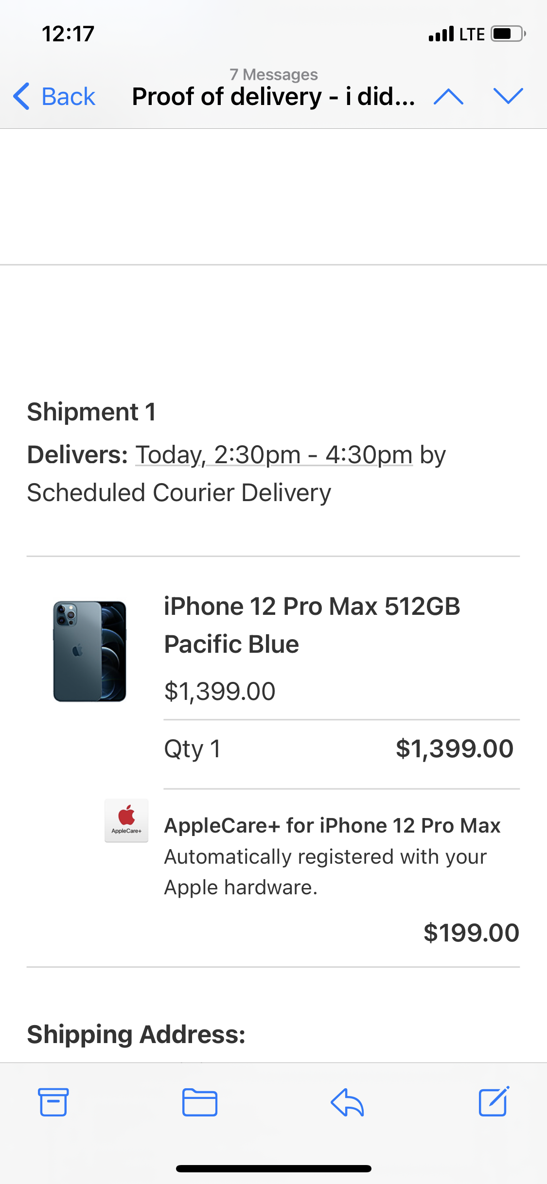 I have bought an iPhone on December 5th & it showed that it had been delivered next day. However, I didn’t receive it. I called Apple twice, got the tracking number & tried to reach postmate to check where the item or who received it. Bellow is the exchanged emails.