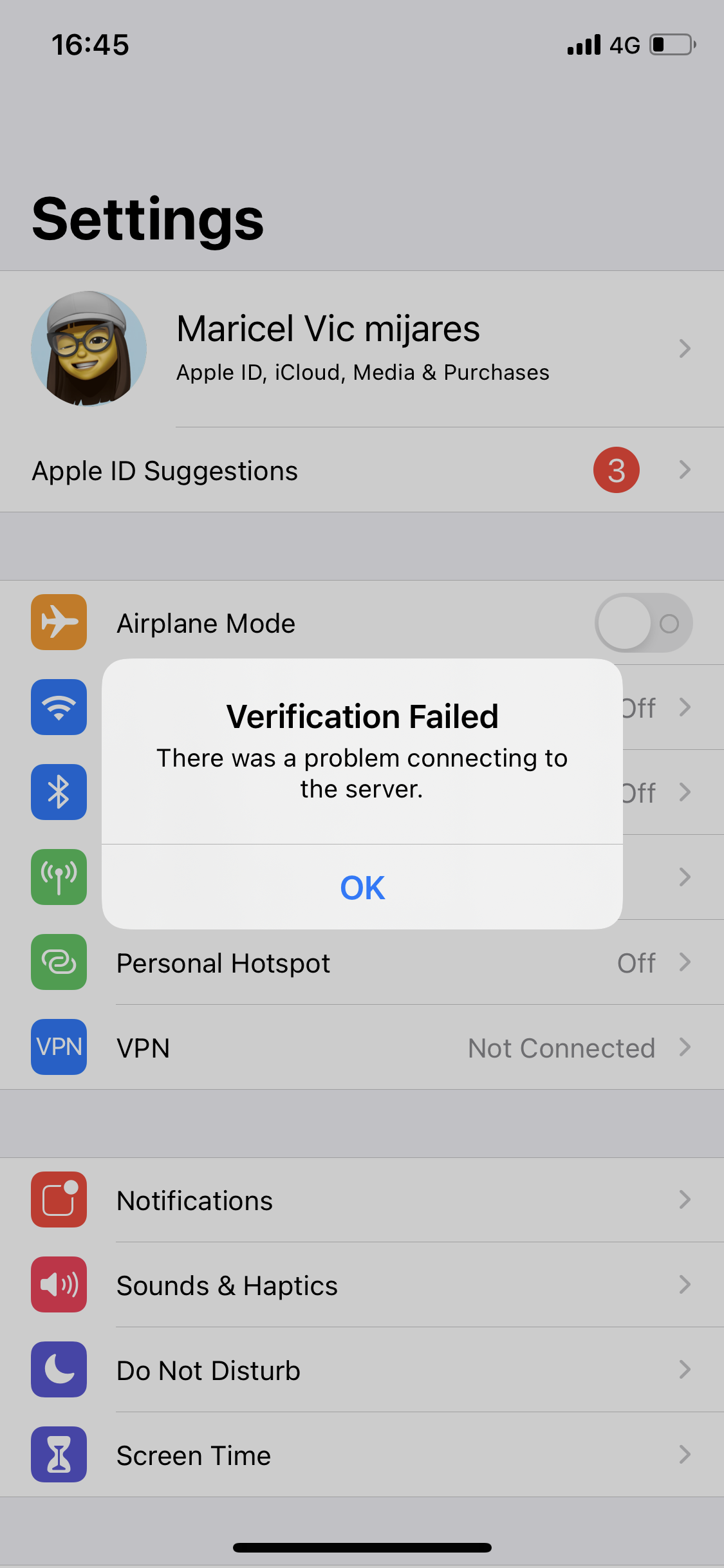Apple id verification failed