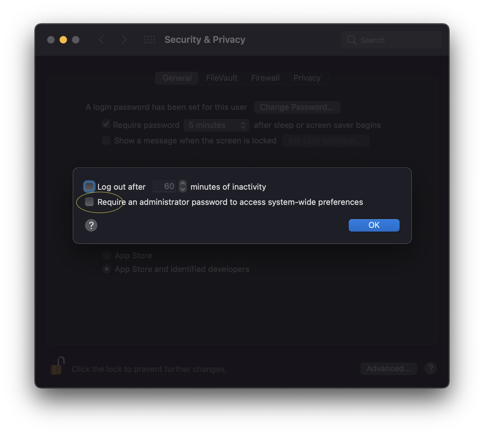 I have two iMacs both running Catalina (10.15.7). The question involves the newest of the two which was setup using Migration Assistant transferring from the oldest iMac. For the old iMac when I turn on Time Machine I am required to enter my Administrative Password to unlock the icon at bottom left of the screen and check to Automatically engage backup. On the newest iMac there is no lock icon at the bottom of the screen to initiate Time Machine and therefor I do not have to enter Administrative Password. I would prefer to have Administrative Password required for this task. How can I fix this matter. Also makes me wonder if the setup over Migration Assistant did not go as it should, but do not notice any other differences. Thanks for any help.