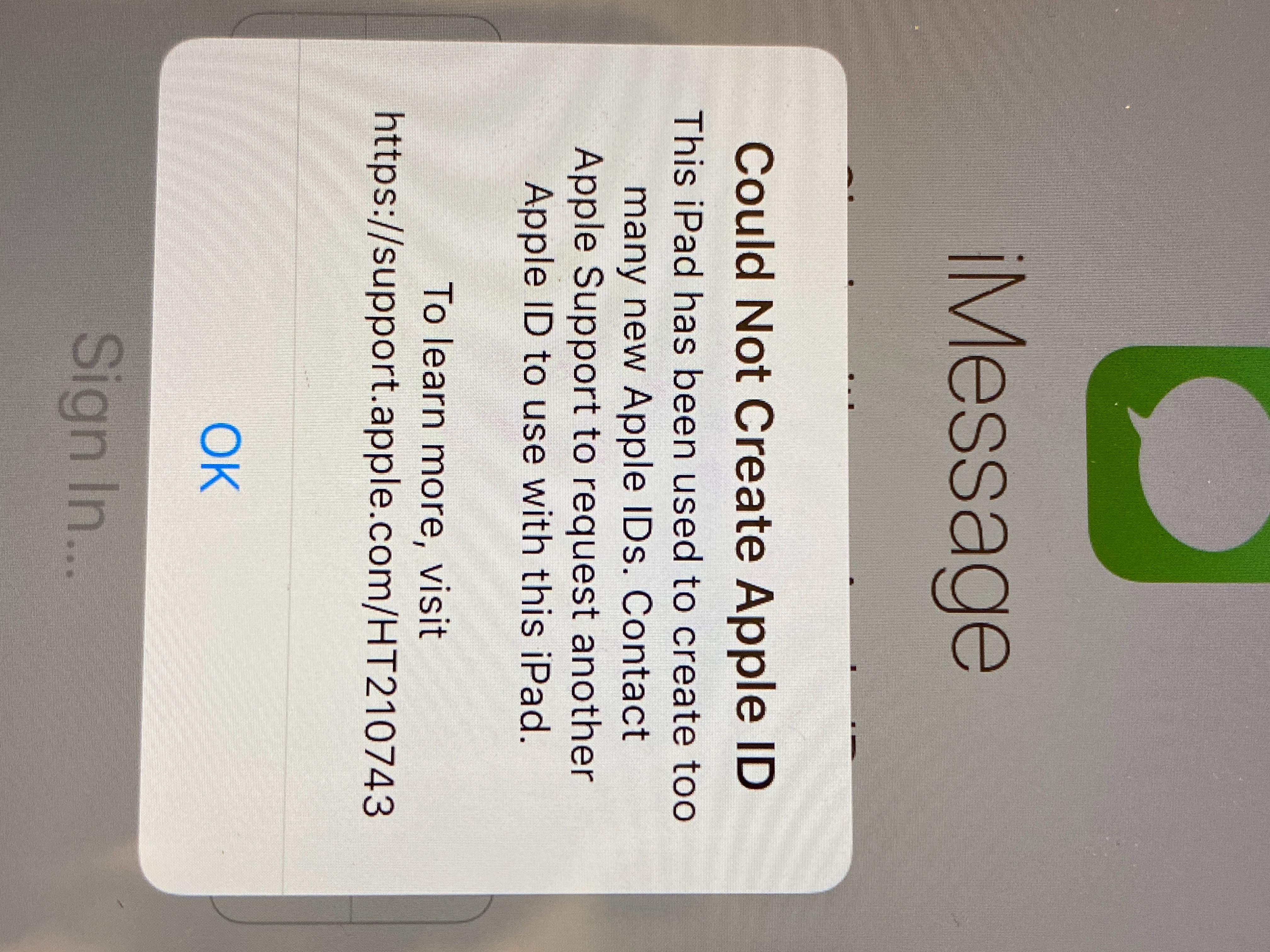 i have an ipad my grandma gave to me but she doesn’t remember the password to her apple id account so i can’t factory reset or change the apple id myself. i even tried creating a new apple id but i received a “could not create apple id” pop up, seen here... what should i do?
