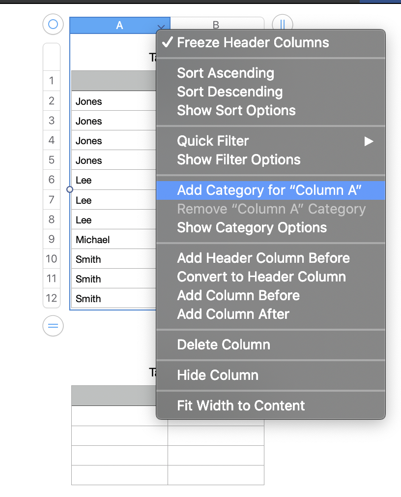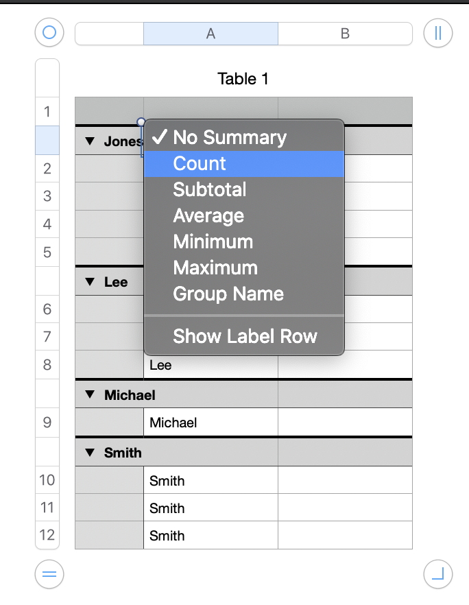 The quick and easy way is to use the built-in Categories feature in Numbers.