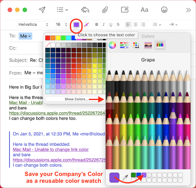 Does anyone have any suggestions on how to change the link colour manually (this does not work by the normal method of highlighting and selecting a colour like it used to), or in a preference somewhere?