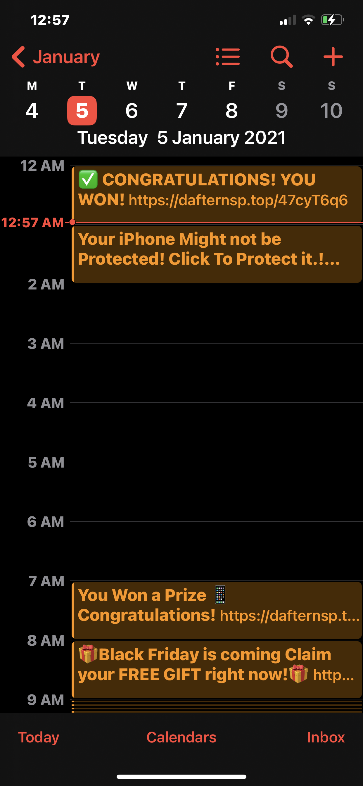 If running iOS 14, check: Settings - Calendar - Accounts - Any rogue entries here? If so, delete the rogue account.