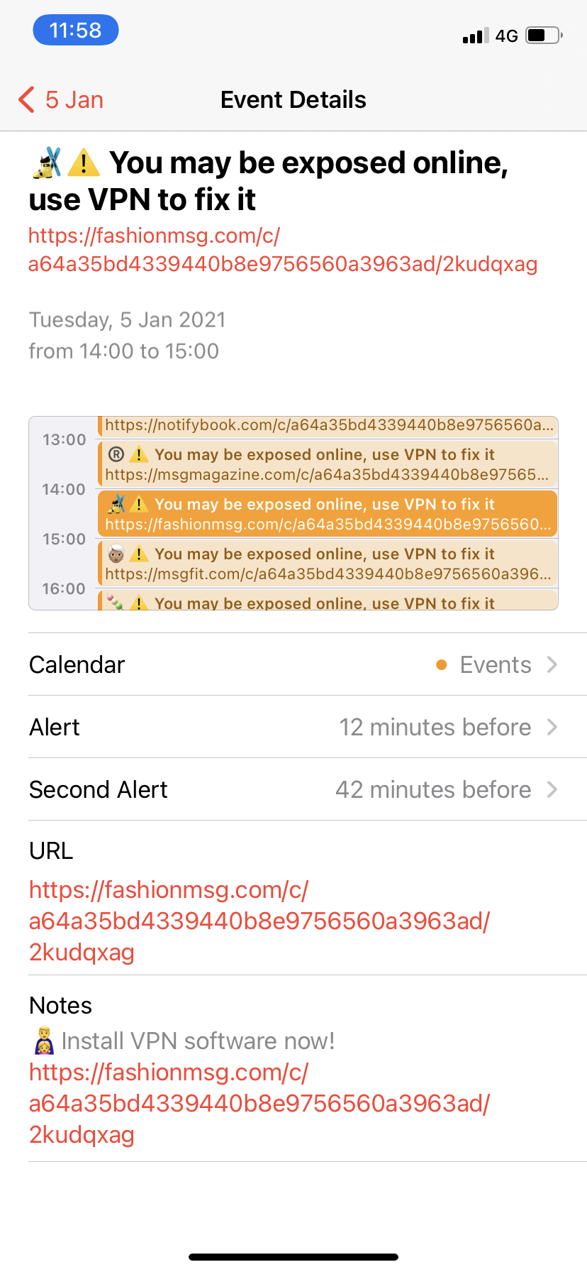 If running iOS 14, check: Settings - Calendar - Accounts - Any rogue entries here? If so, delete the rogue account.