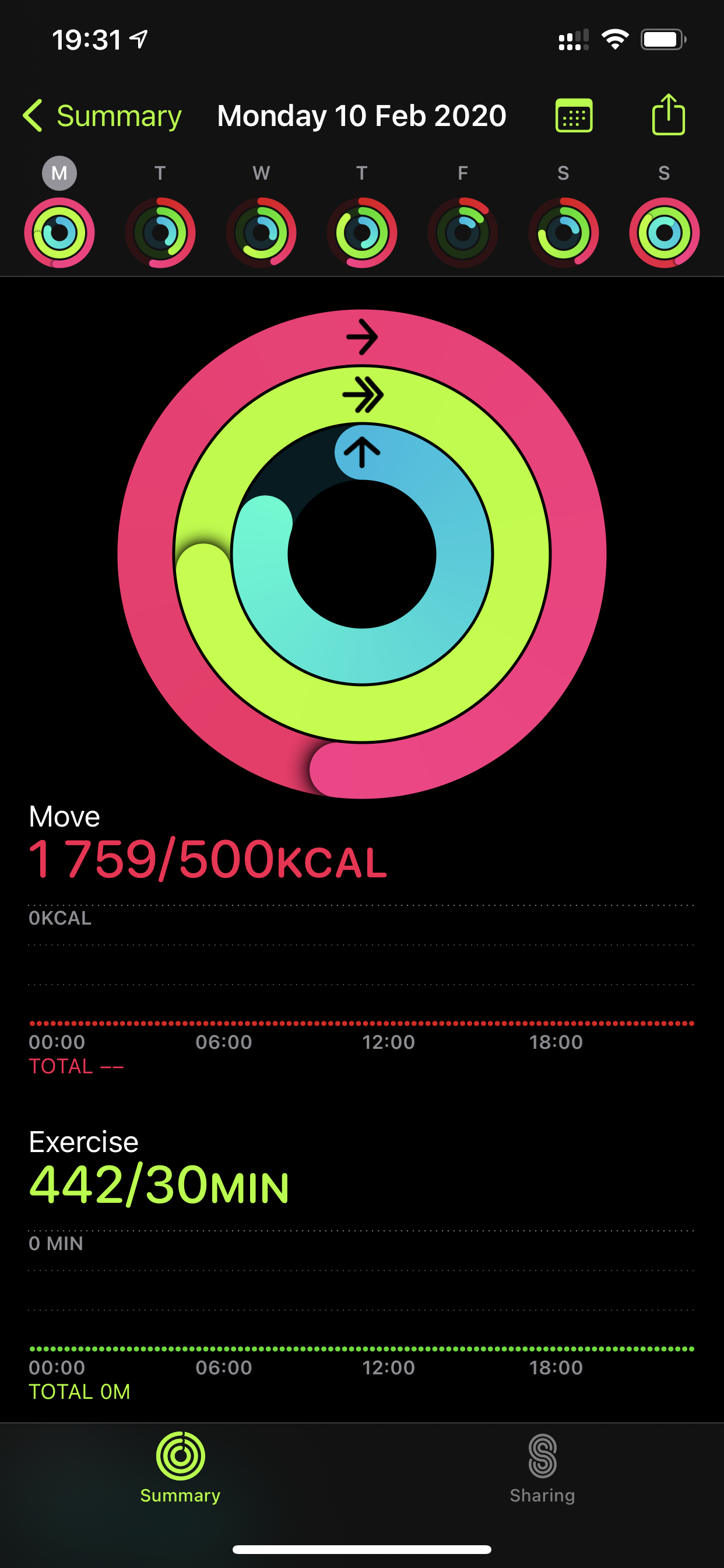 I’ve started using my Apple Watch a lot more and use awards to motivate me, but to my surprise I already had a New Exercise Record of 442 min on the 10th of February.