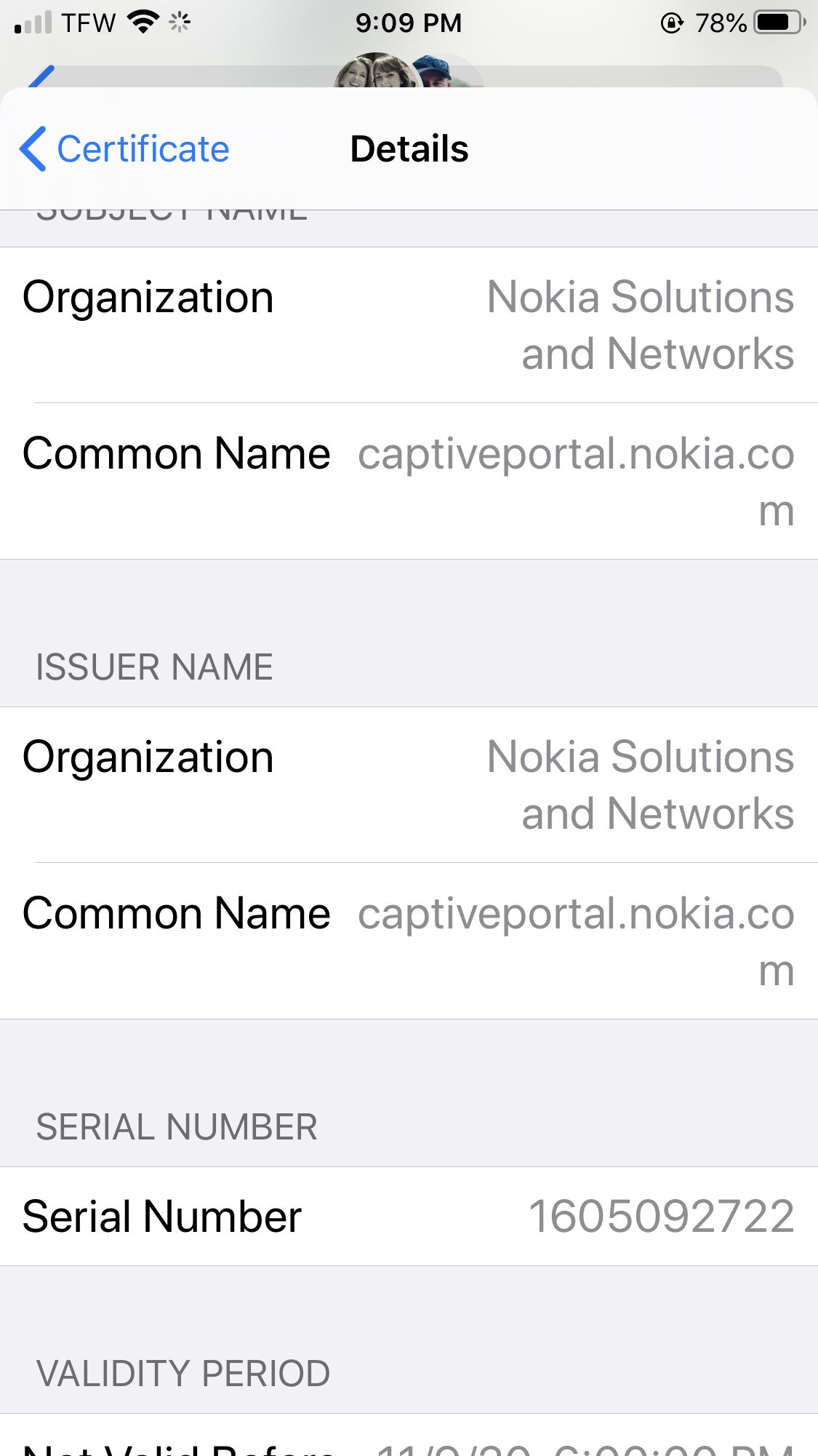 This keeps popping up as soon as I get off home wifi in the car. It says imap.gmail.com cannot be verified. Click Details and it says captiveportal.nokia.com. I am really fed up with this, and someone else asked it, and over 1200 people had the same problem, but no one answered it correctly on their thread, and it said I had to make a new thread. This is annoying, because every page I go on, it keeps popping up and I have to hit cancel and fast or my phone is basically useless out in public. Fed up with it. There is absolutely nothing on this phone that should be related to Nokia. I don't even think they are in business anymore, and I own their old crappy stock from 20 years ago, and its only worth about 24 cents.