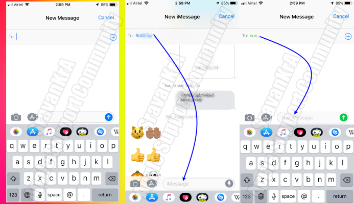 iMessage indicates the contact is using an iPhone and have enabled iMessage