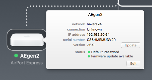 I have deliberately not upgraded the firmware on the Airport Express. So it gives an error I have ignored.