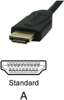You would use a HDMI cable of the wanted length, with standard ‘A’ size plugs.