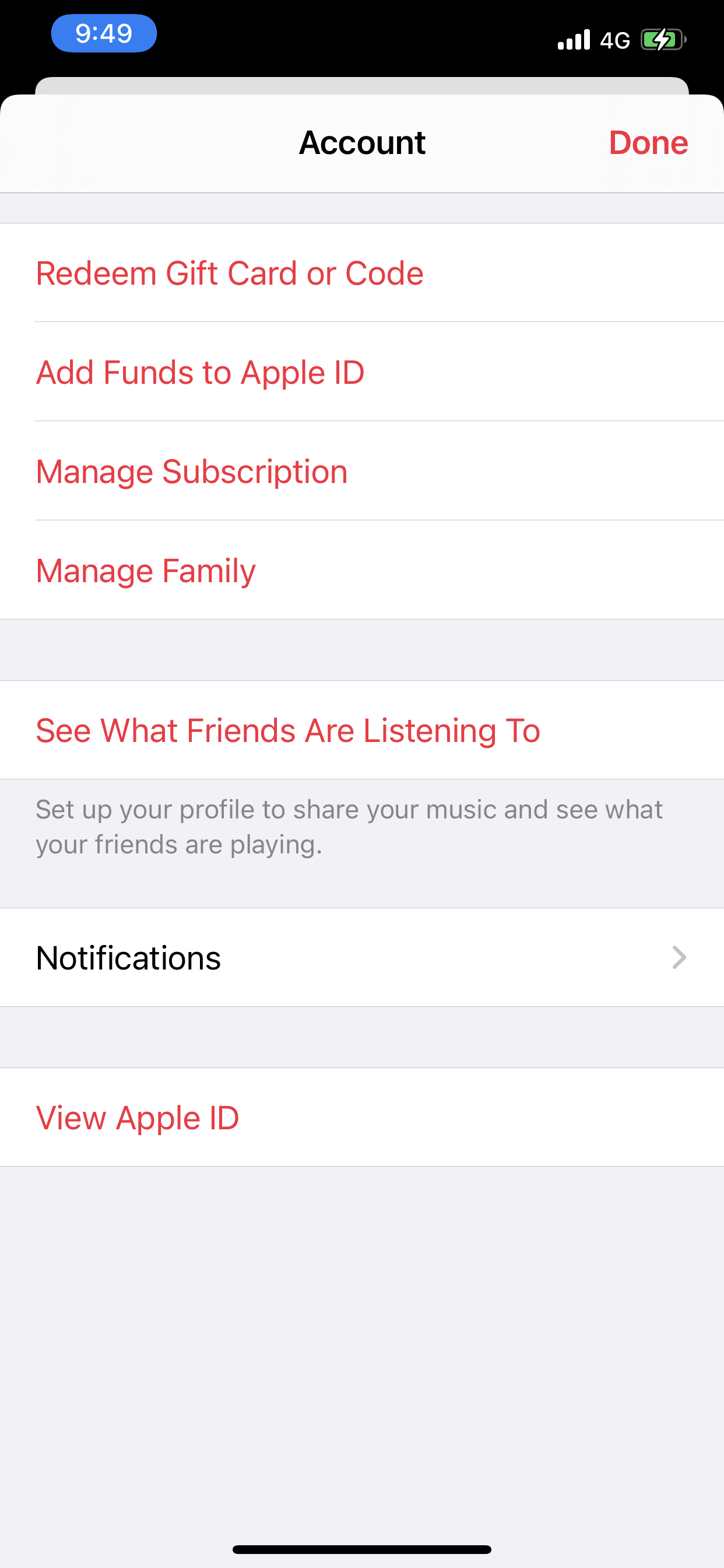 - clicking on the avatar in “listen Now” brings up a menu with no options to edit the profile nor avatar.