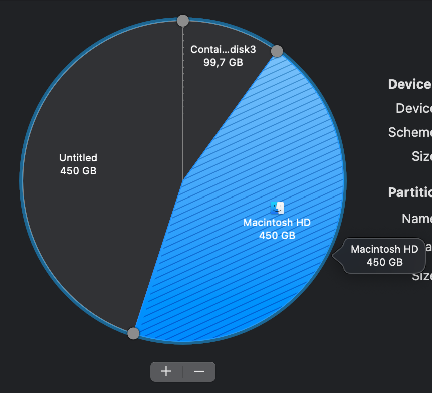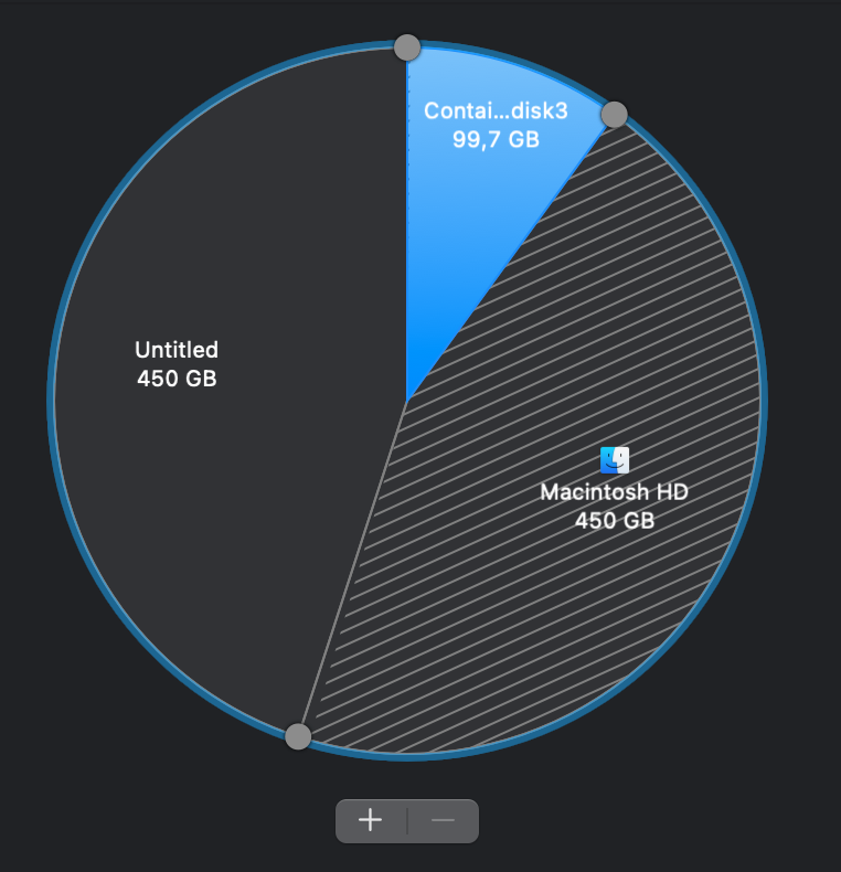 I can't delete an empty APFS container on my new ssd (Crucial P1), because the "-" button is greyed out. But somehow i can delete my current, active system container.