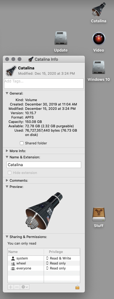 I'm in Big Sur at the moment, and it wouldn't let me place the icon into a Catalina partition's info. Not even if I told it to ignore permissions on the volume. And the really odd part of that is if I'm in Catalina, the drive already has a custom icon that doesn't appear in Big Sur. Haven't taken the time to figure how to assign one in Big Sur.