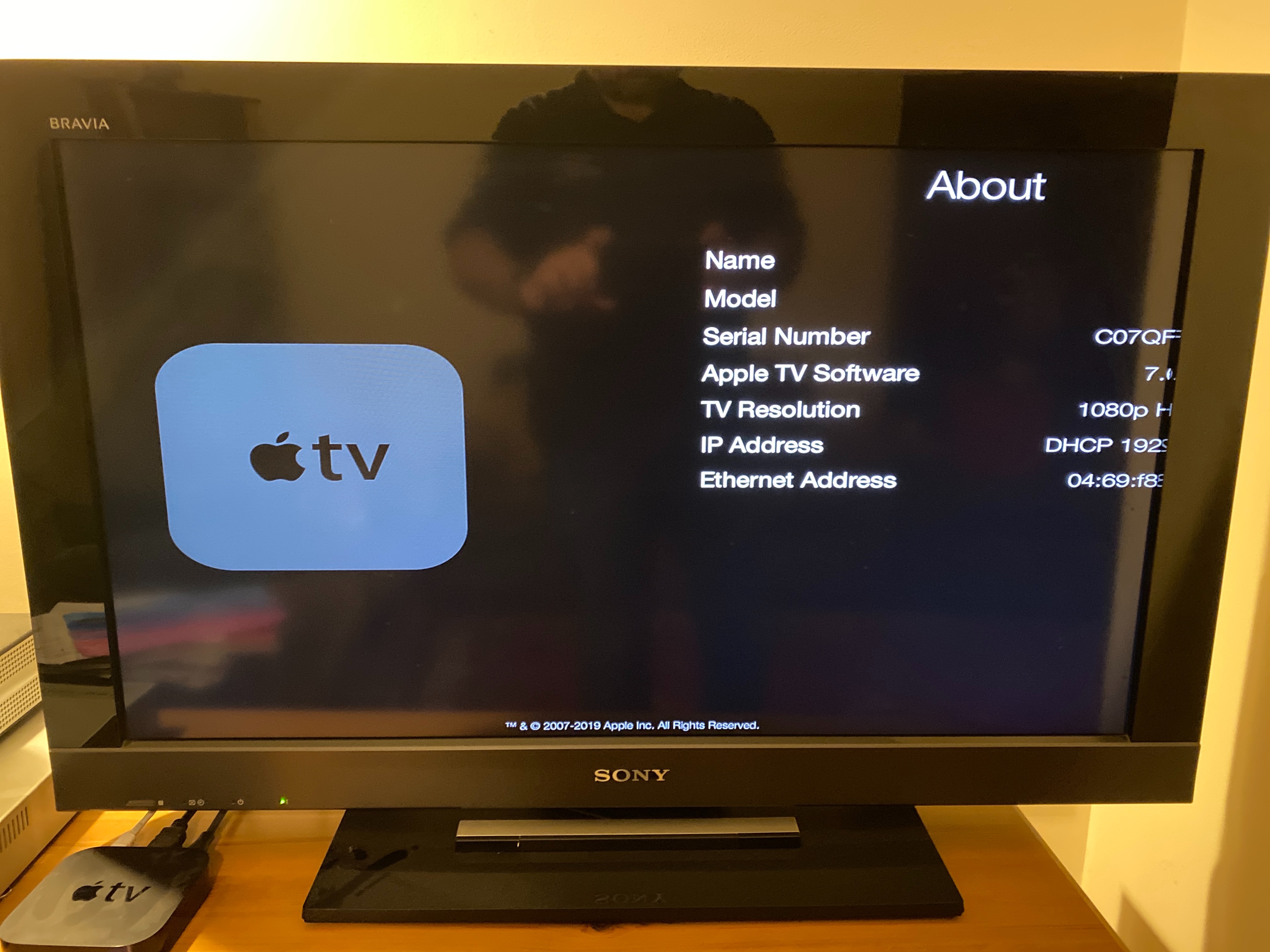 Its an Apple TV Series 2 (I think, although the model number doesn’t display in the TV as the image is too big!