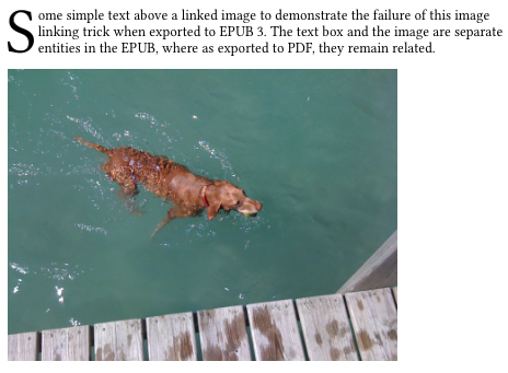 When you export a Pages document containing an image with "#" text box overlay, internal to the EPUB, that text box becomes an HTML DIV container comprised of multiple HTML paragraph tags (<p>) that each contain the anchor (<a>) syntax representing the web link. The "#" characters are added as text, to represent the rows of "#" that you see on the EPUB image.