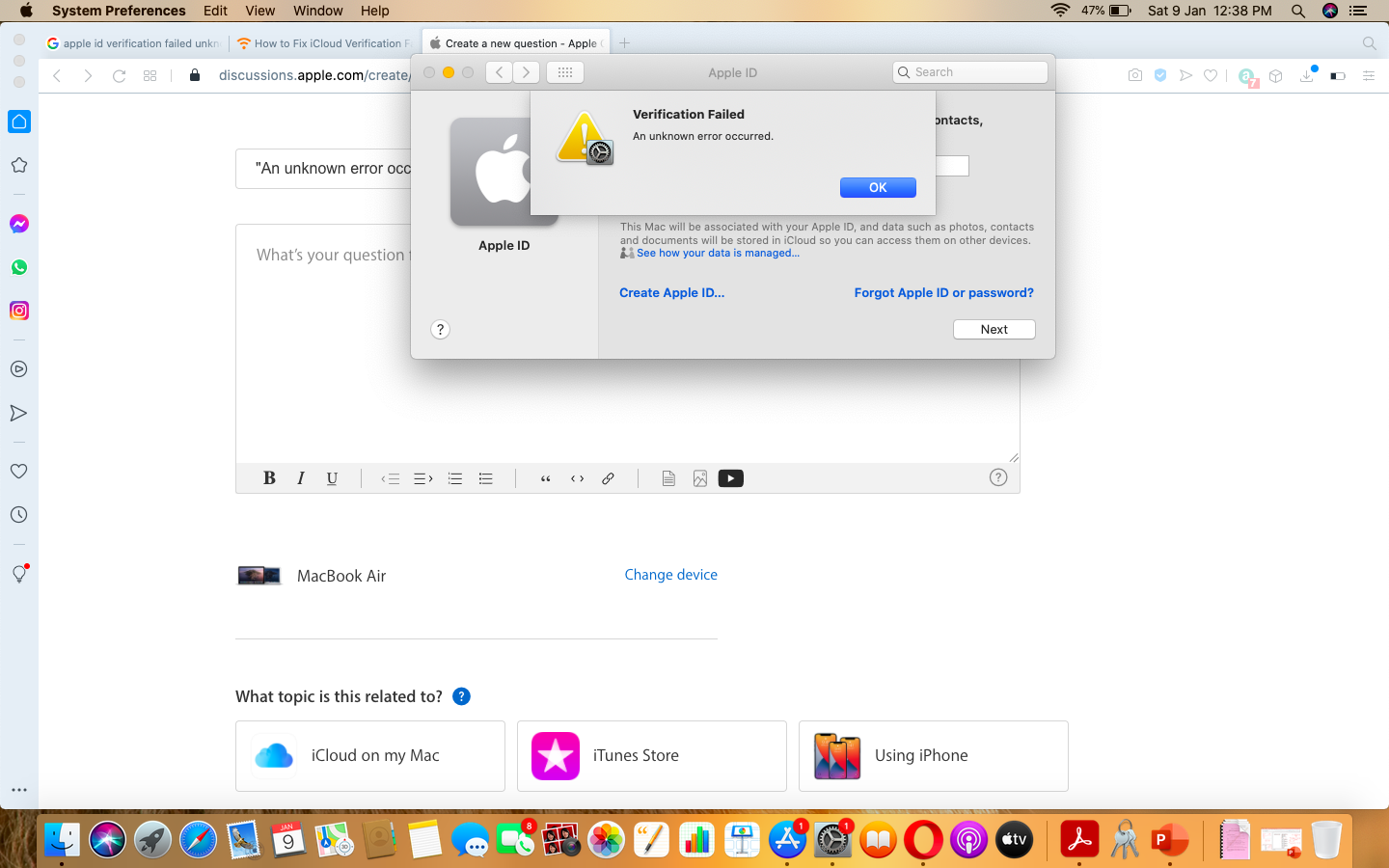 An unknown error occurred - verification failed during login to App Store
