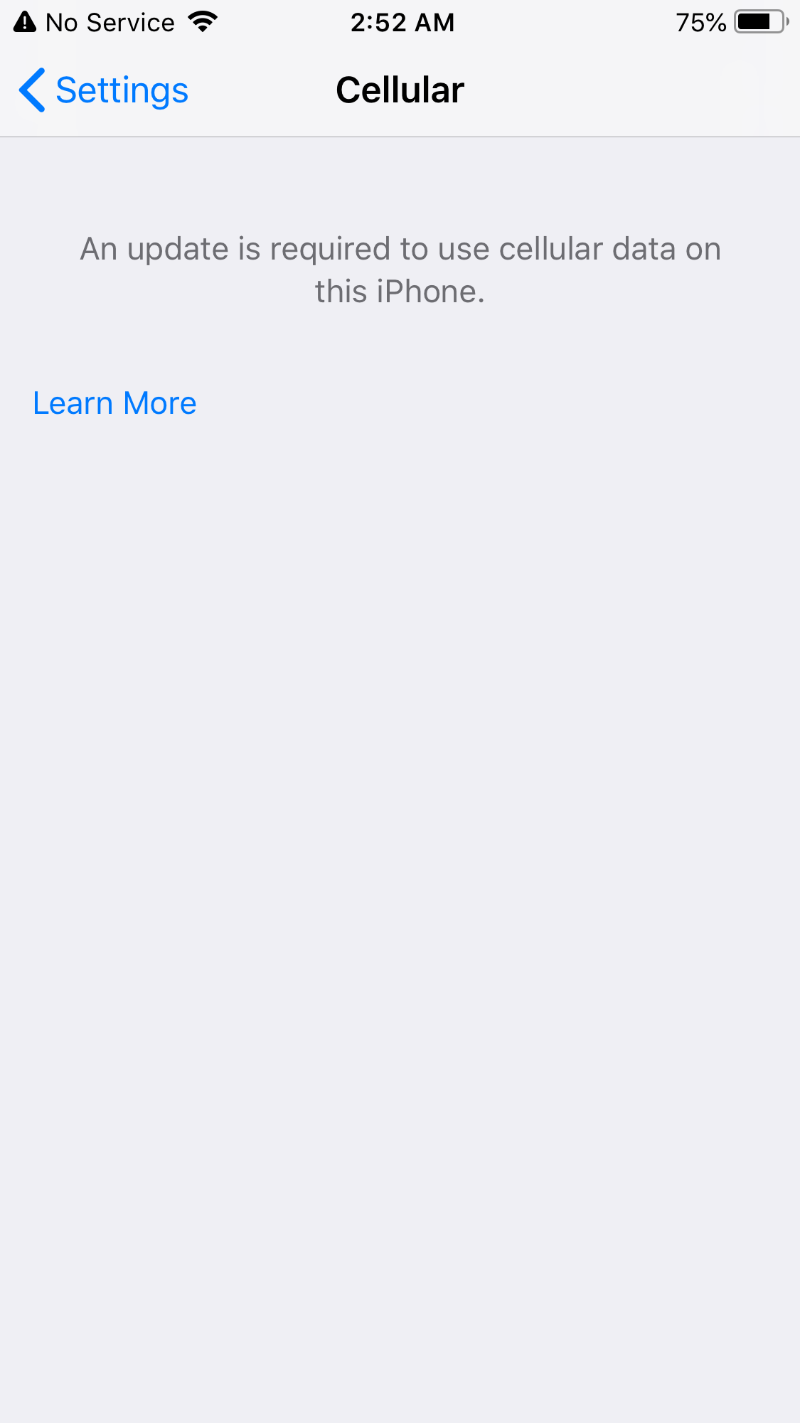 An update is required to use cellular data in this iPhone - Error message