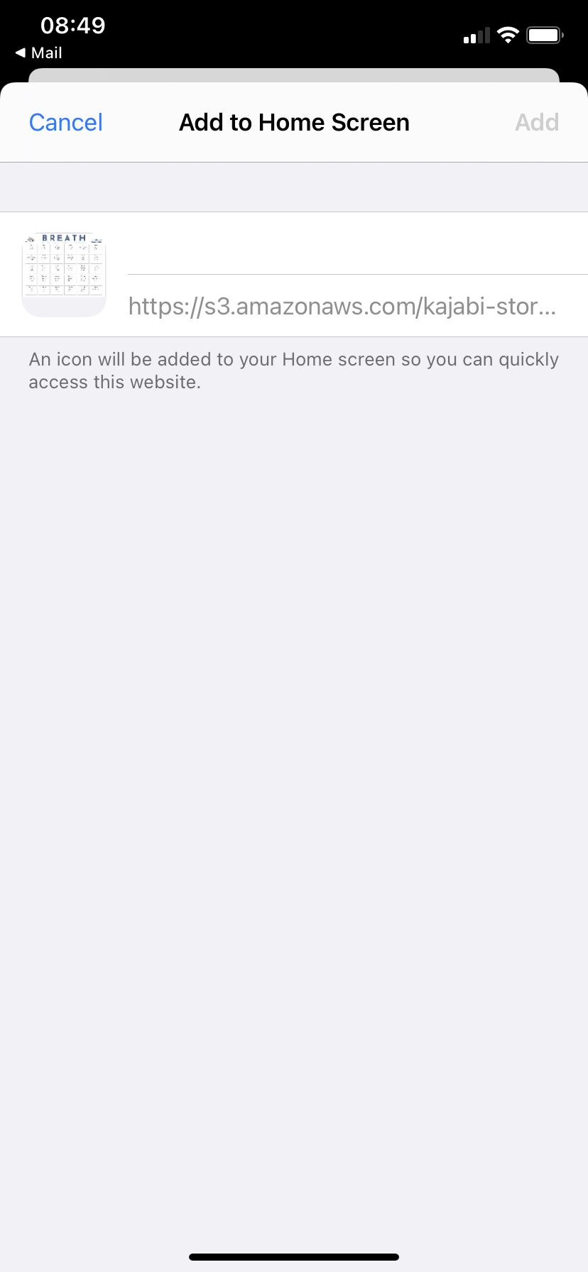 I’m trying to add a shortcut to my hone screen . I hit the Add To HomeScreen button in the Share pop-up window, this then brings up the link I want to add but it’s greyed out and won’t let me add it.