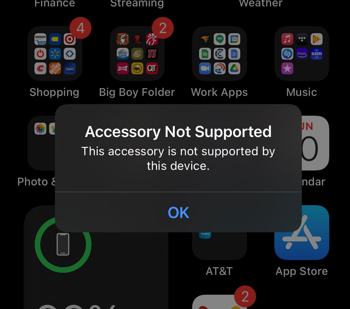 I plugged in my Wired Beats headphones into my IPhone 12 and a message pops up saying “ this accessory is not supported with this device.” Are my headphones messed up or is this change? The headphones have the lightning connection not the 3.5mm connection.”