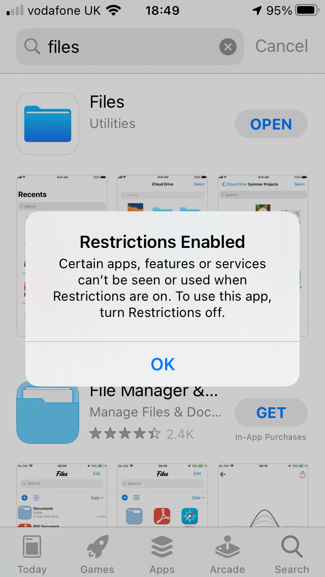I can’t open my Files app, because, for some reason, it has restrictions on it. I have tried every option, but none of them have worked. Can you please help me?