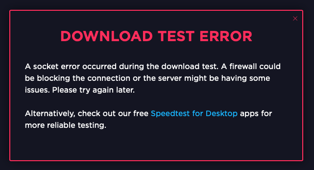 For some reason I cannot run a speed test using https://www.speedtest.net/. i always used to be able to.