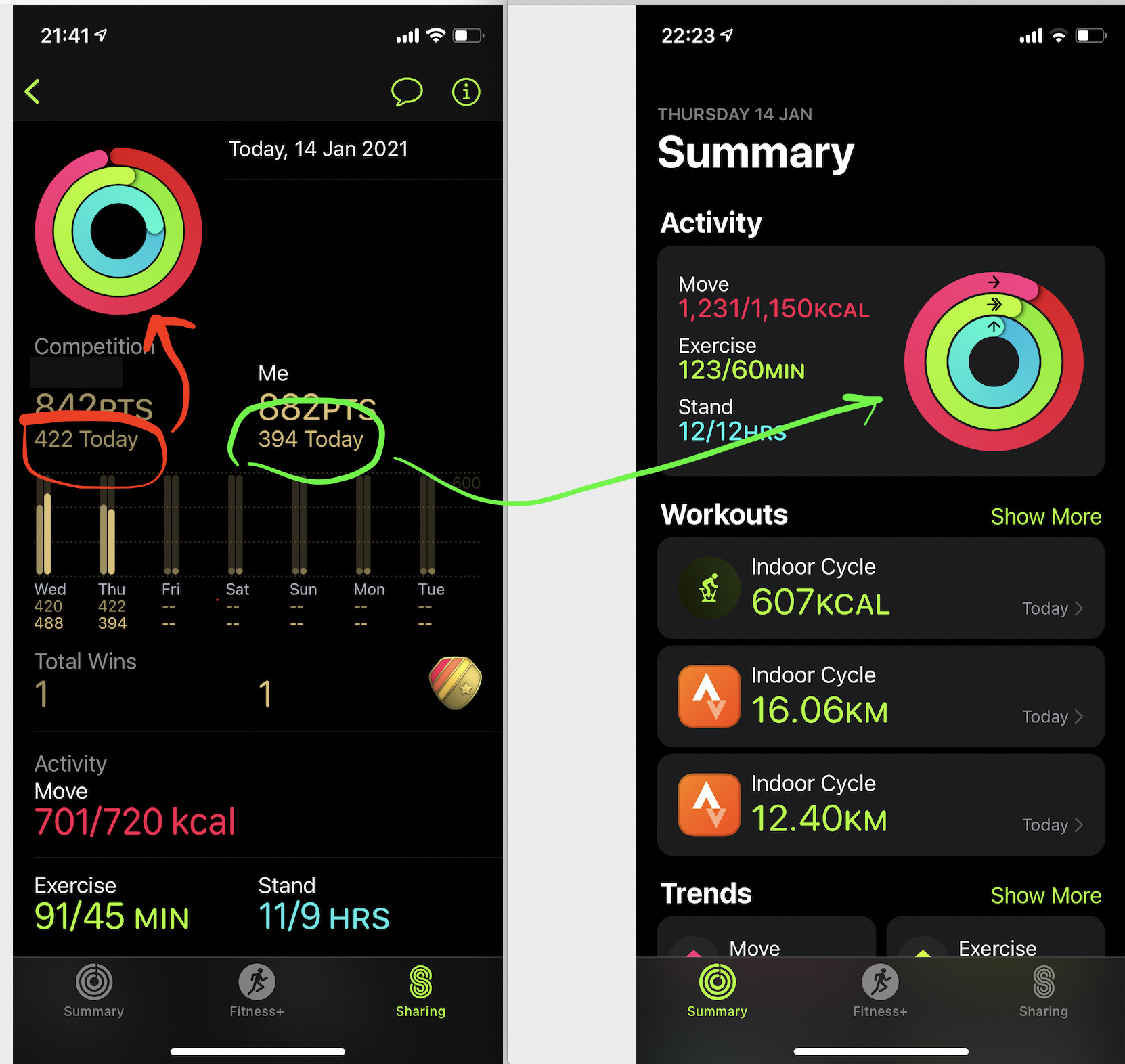 There have been a few occasions my friend + I have completed both of our rings but not got 600 points (see image below). It doesn't appear to match any kind of pattern so wondering if it's a bug? Anyone else noticed this. I'm on an Apple Watch 6 and my friend is SE.