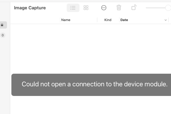 I got this error on my Mac Mini with Big Sur 11.1 today when I plugged in my iPhone 12 Mini (tried two different cables) in Image Capture: