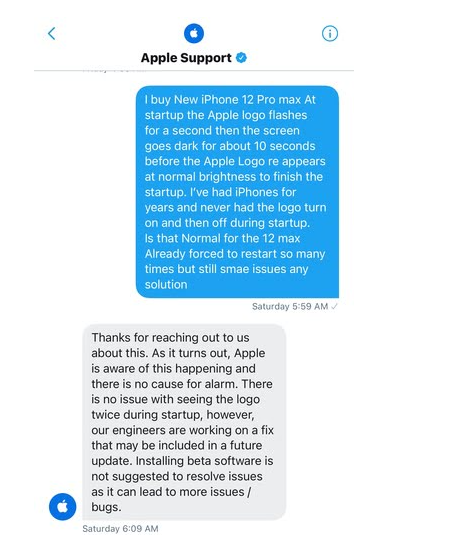 Eventually I had a person to person appointment at the Genius Bar and the genius representative said that maybe I should try factory reseting it ‘as from new’ with no back up restore - this was unacceptable as I would lose too much info and besides it wouldn’t fix the issue as the logo flashed from day 1 when switched on from out of a sealed box. Furthermore he said he never knew of, nor seen the logo flash issue, so I showed him there and then (there was some silence). Additionally I showed him the 2nd issue Inwas facing with the very subtle yellowish / urine-tinted colour on the display which doesn’t give a neutral white. I put my iPhone XS next to my new 1,399 price tag iPhone 12 Pro Max where the iPhone XS has exceptionally neutral white whites on the display - again there was some silence before then telling me everyone’s perception of white on the display is different. I said for a dead-neutral true white it has to be devoid of any hint of colour whatsoever, so that it is just white and as result all the other colours are more balanced and pop. The Genius support technician was just leading me on really and had no real intention whatsoever to help fix and resolve the issues on this particular occasion with one of the most expensive consumer phones on the planet right now.