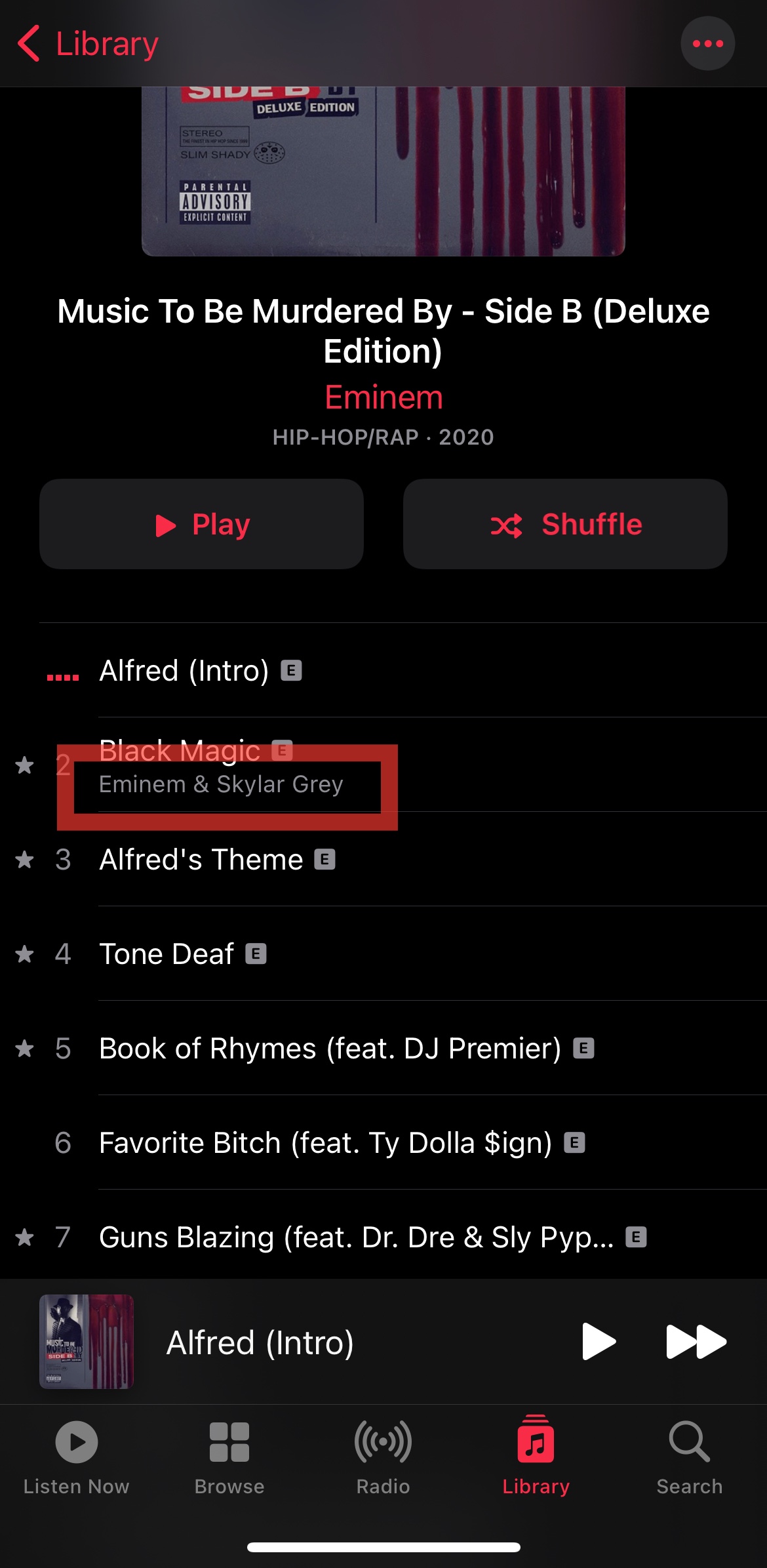 if something changed. But for the screenshot below, notice that for the whole album, only the one song has artist populated under the song same. And from what I’m seeing as I look through my music, it seems to be just on this album. Any thoughts? All input is appreciated!!