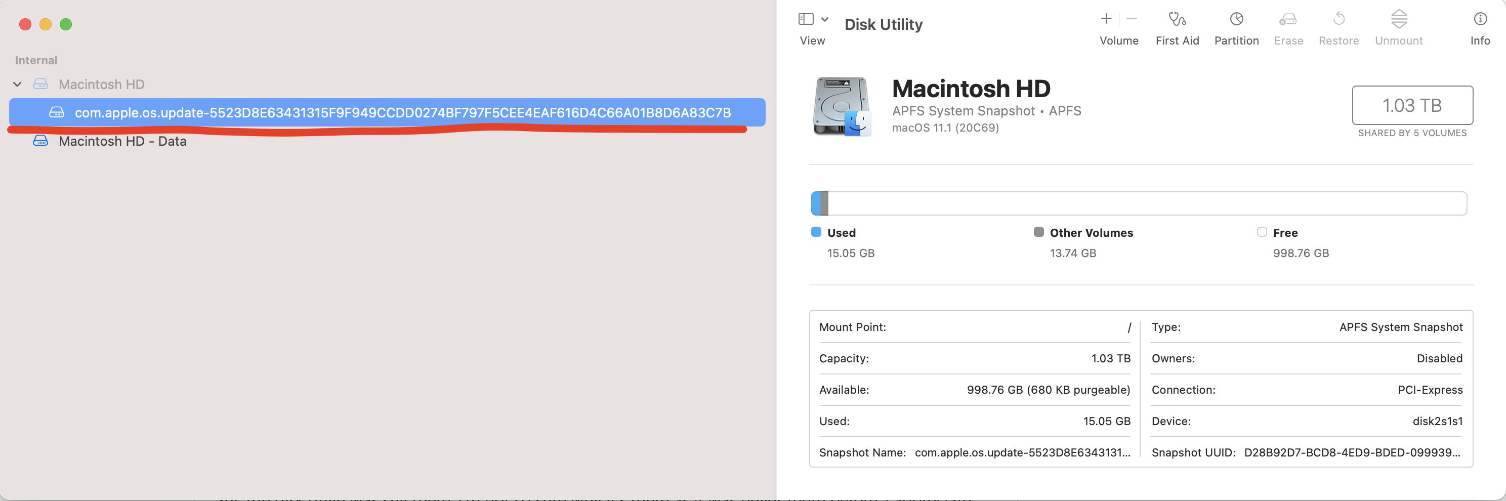 A new disk drive (named "update") appeared after erasing my disk and reinstalling Big Sur