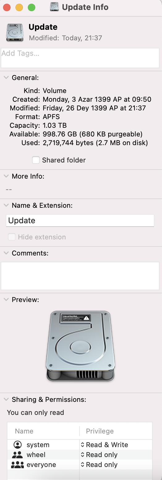 A new disk drive (named "update") appeared after erasing my disk and reinstalling Big Sur