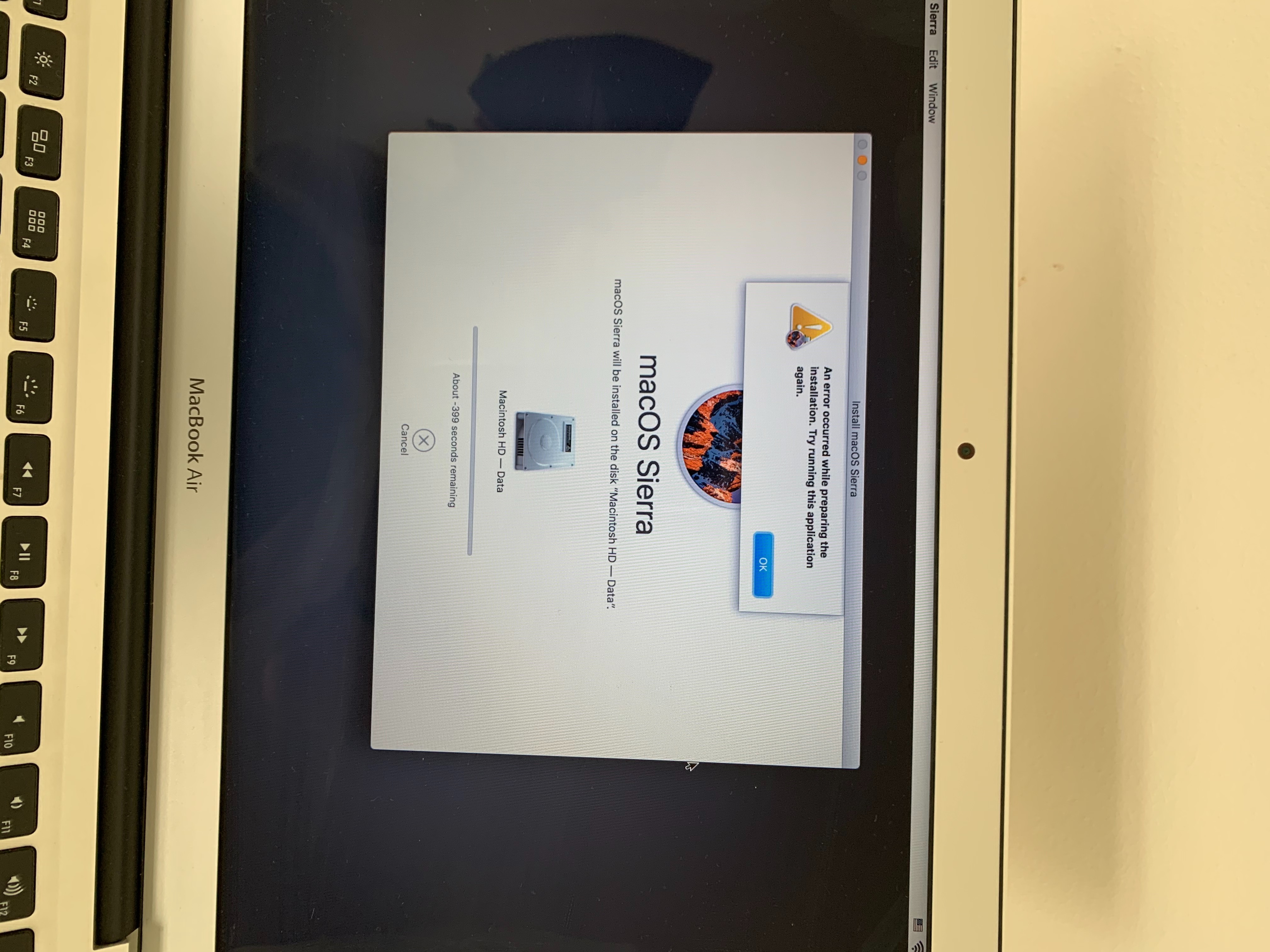 Hi! I have decided to sell my old 2015 MacBook Air, and so I performed a factory reset on the laptop. However, I am now unable to reinstall macOS from macOS Utilities. After initialling resetting it, my screen popped up with the spinning globe prompting me to do an internet recovery. My computer shut down immediately after connecting to my WiFi network, and when I powered it back on, the prohibitory symbol (circle with dash through it) appeared on the screen. I then followed the steps to press Command + R , in order to access the Disk Utility page. I am now unable to reinstall macOS when I try due to error messages appearing on the screen. I have absolutely no idea how to fix this issue. The laptop was working perfectly fine before I decided to do a factory reset.