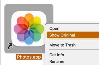 I am preparing to move files to a new computer. I'm confused about what appears to be a Photos alias on my desktop. Since I see the Photo app in the dock, why would I also have a Photos icon on my desktop? How can I tell if it is just an alias? Thank you.