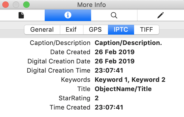 Thank you. I exported a photo from mac photos with a title, description, and key word to my mac desktop, using the process you forwarded to me. When I opened the exported file on the desktop I saw the title but could not find a way to see the description or the key word. I was hoping I could use the description box of the photos photo to type in information that could then be read in a photo I could send by email or social media.