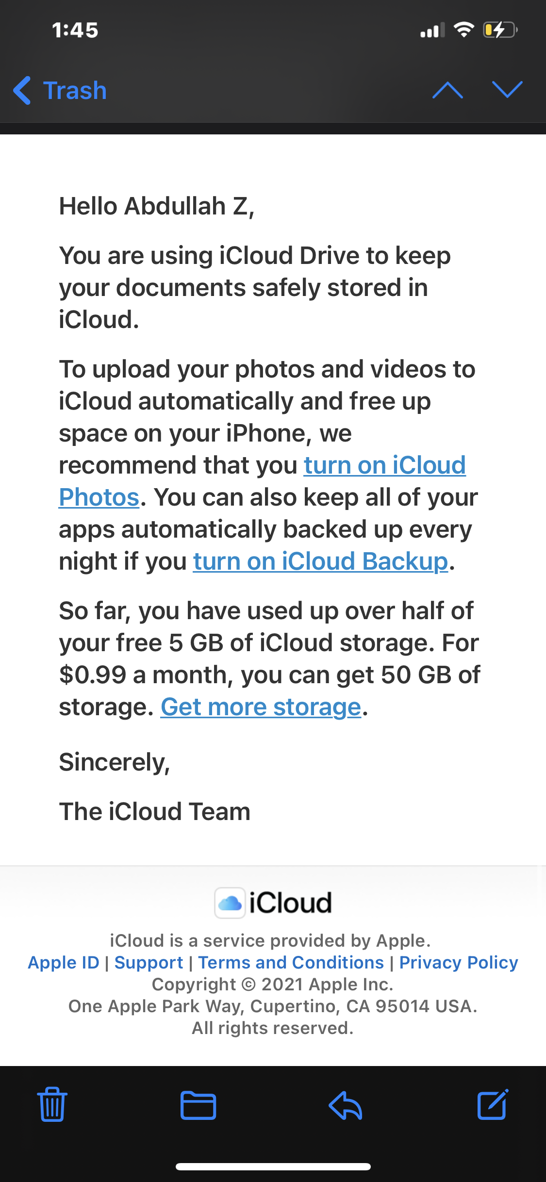 I receive an email that I have used over 50% of my iCloud storage which wrong. I have used only 2 GB of 5 GB that mean there is wrong status of you. please when you want to send any email don’t bathering me with wrong statistic