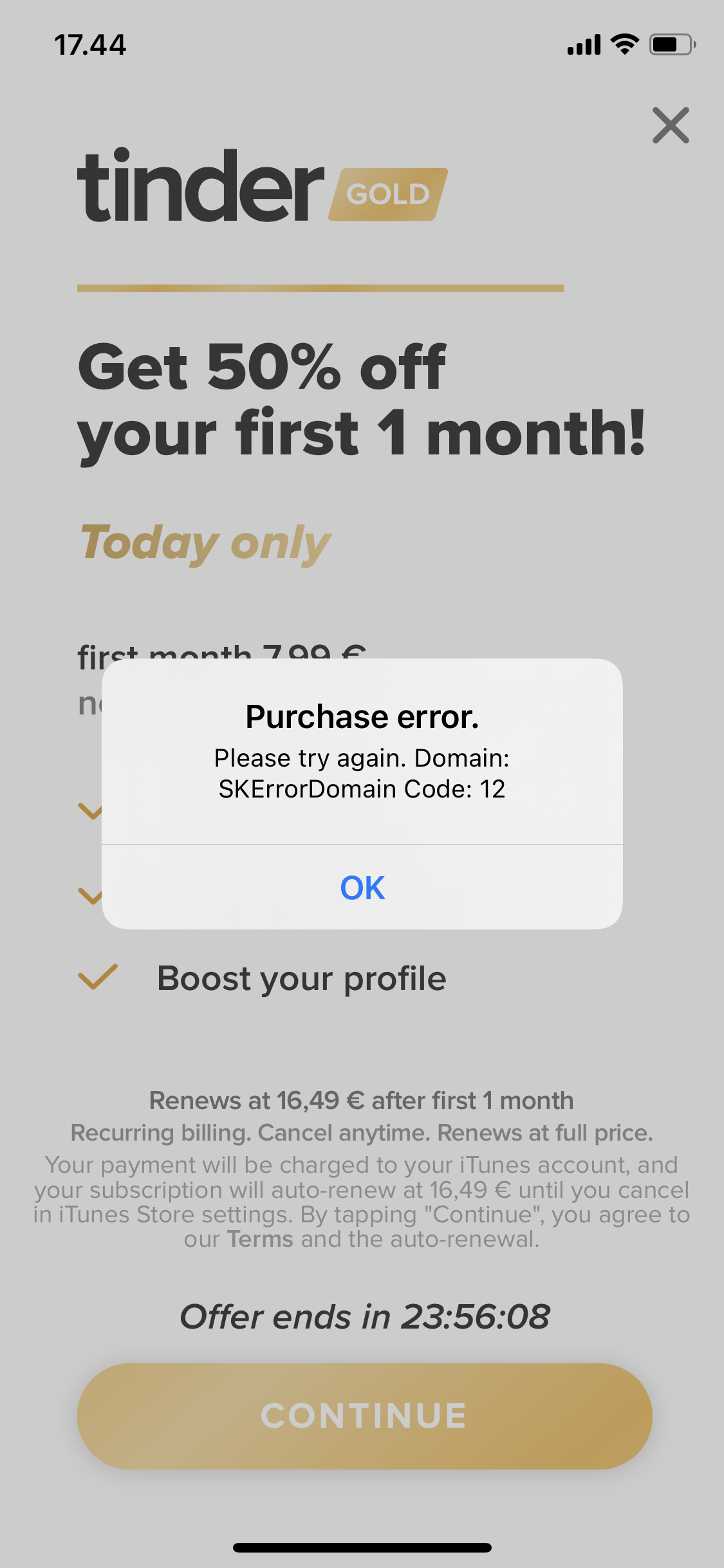 I tried to purchase a subscription, but got an error message instead. I do have valid payment method added to Apple Pay.