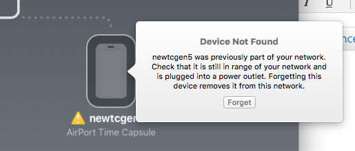 Until today, I was using a Time Capsule as a router and for automatic backups to Time Machine. I know, I know, it's old, but it'd been doing just fine and I didn't want to mess with it. Today, I purchased and setup a new router. Instead of the expense of a new external hard drive right now, I'd like to continue using Time Capsule for backups. I thought I was doing okay, but messed up and have now "lost" Time Capsule in AirPort Utility.