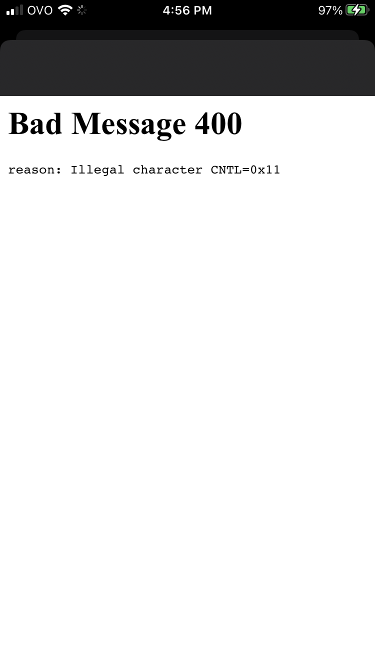 Bad message 400 reason: illegal character CNTL=0x11