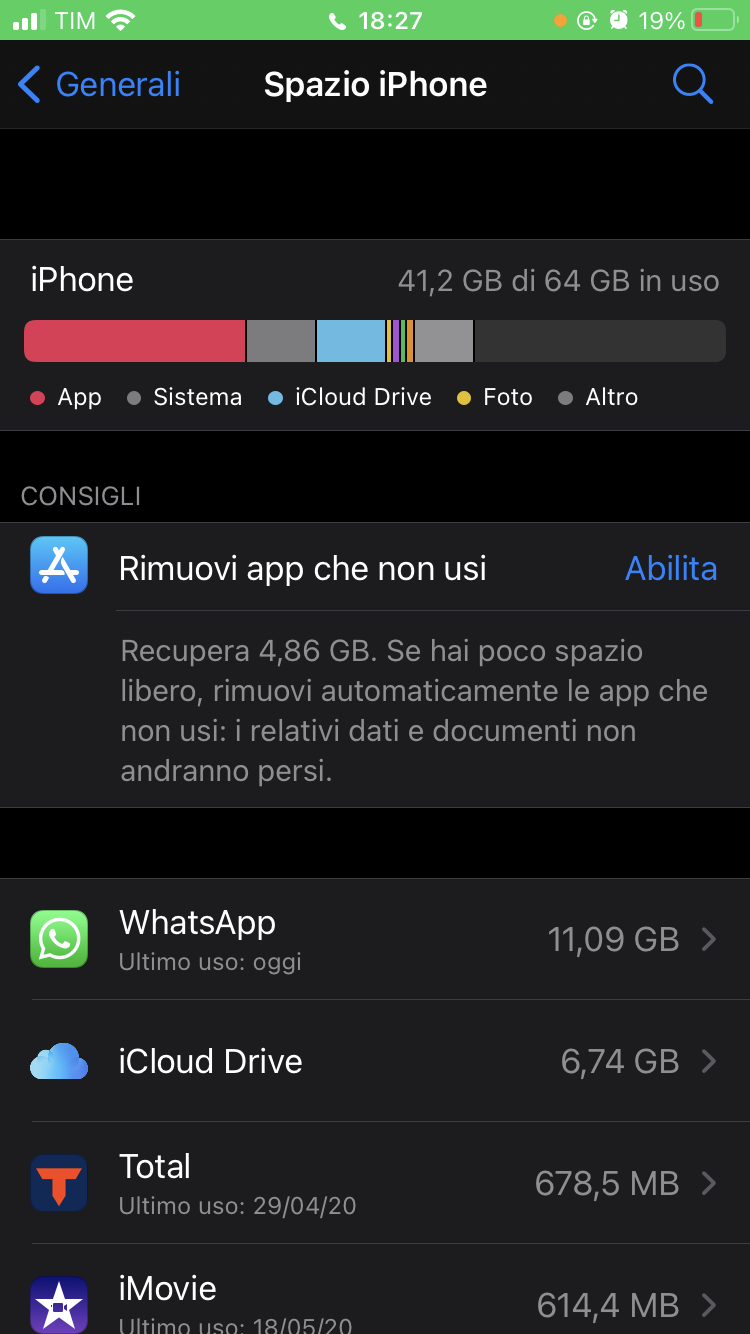 Per curiosità, dimmi quanto spazio è attualmente occupato sul tuo iPhone. Lo ottieni andando su: