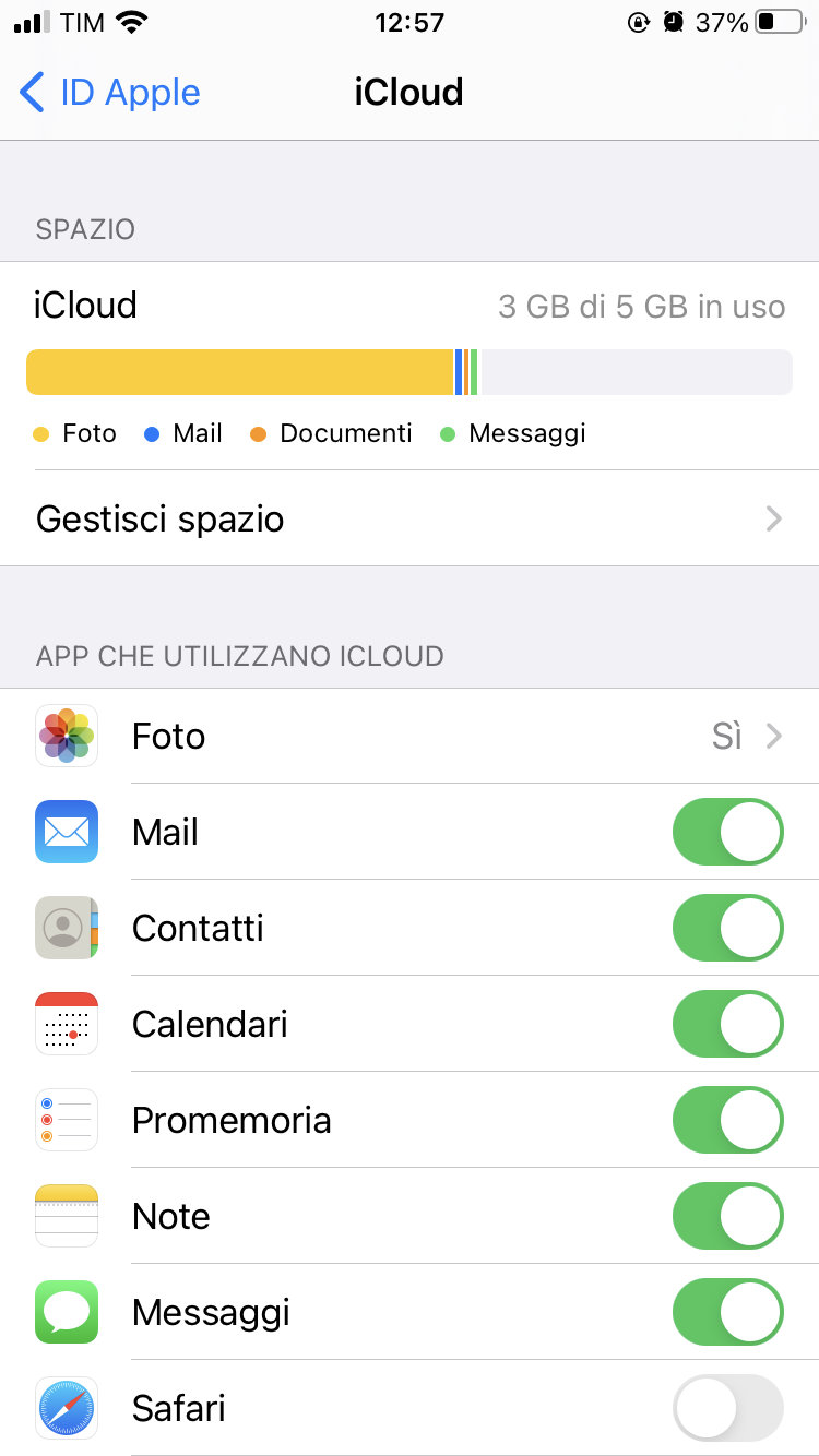 Ecco lo spazio occupato sul mio cellulare... ho disattivato tutte le app tranne foto e contatti su iCloud non so cos’altro fare.. mi sa che l’unica soluzione è effettuare il backup su un pc...
